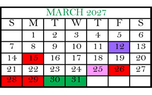Mar 26-29 National Holidays